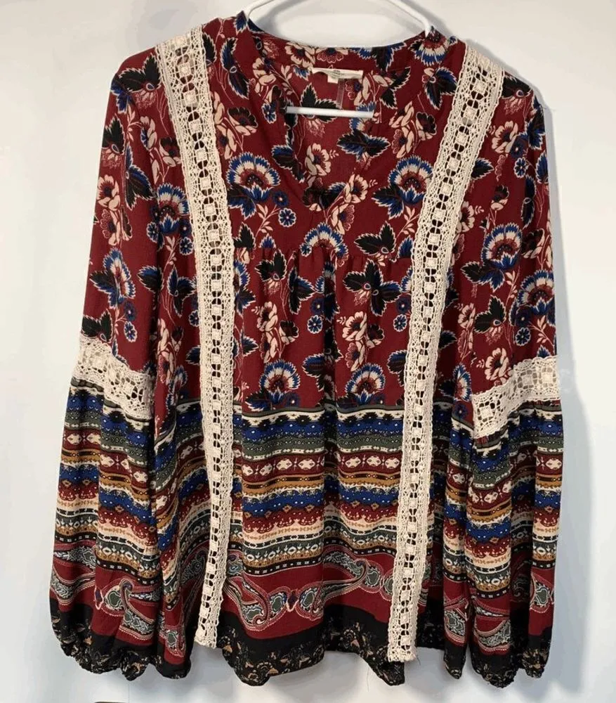 Entro Peasant Boho Blouse Size Medium EUC See pictures for additional details Bundle 2 or more i... Show more