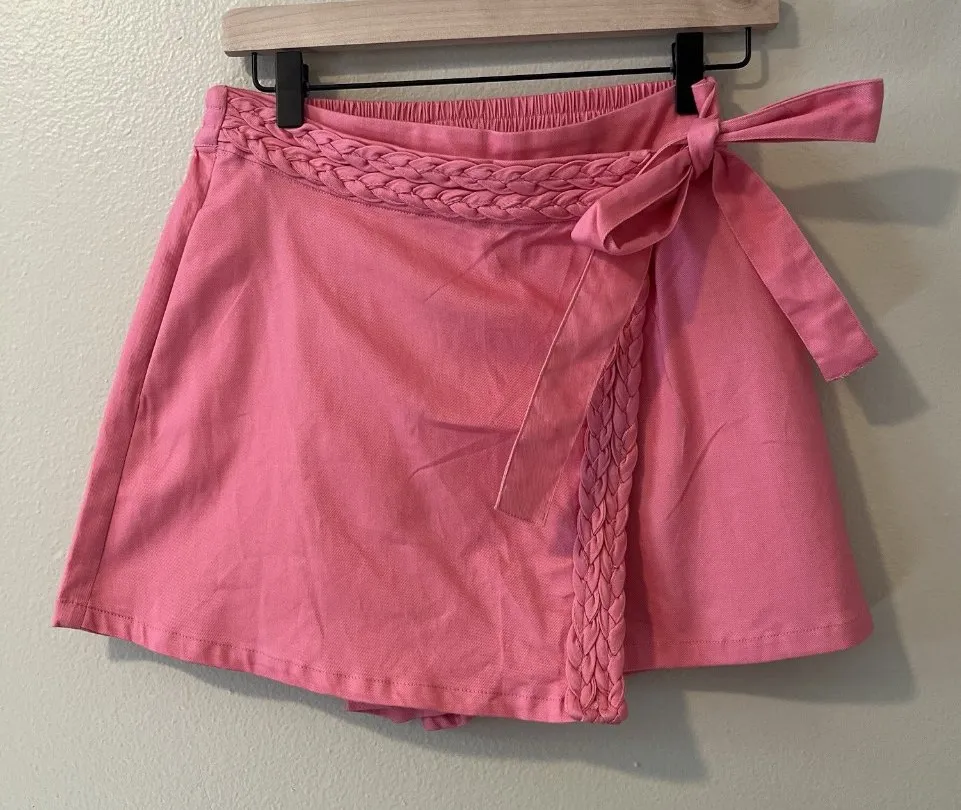 New, never worn skort by entro -bright hot pink -self tie front -braided design -stretchy wa... Show more