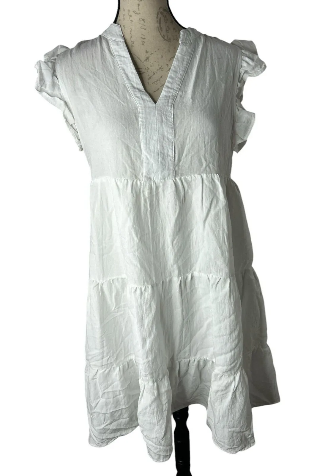 Entro Tiered & Lined White Babydoll Dress with Pockets and Flutter Sleeves S This white baby doll d... Show more