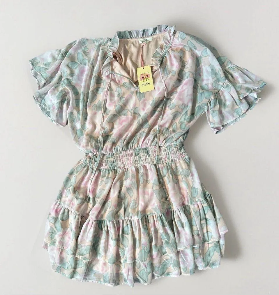 This Entro women's dress features a beautiful floral print with a V-neckline and flutter sleeves. Th... Show more