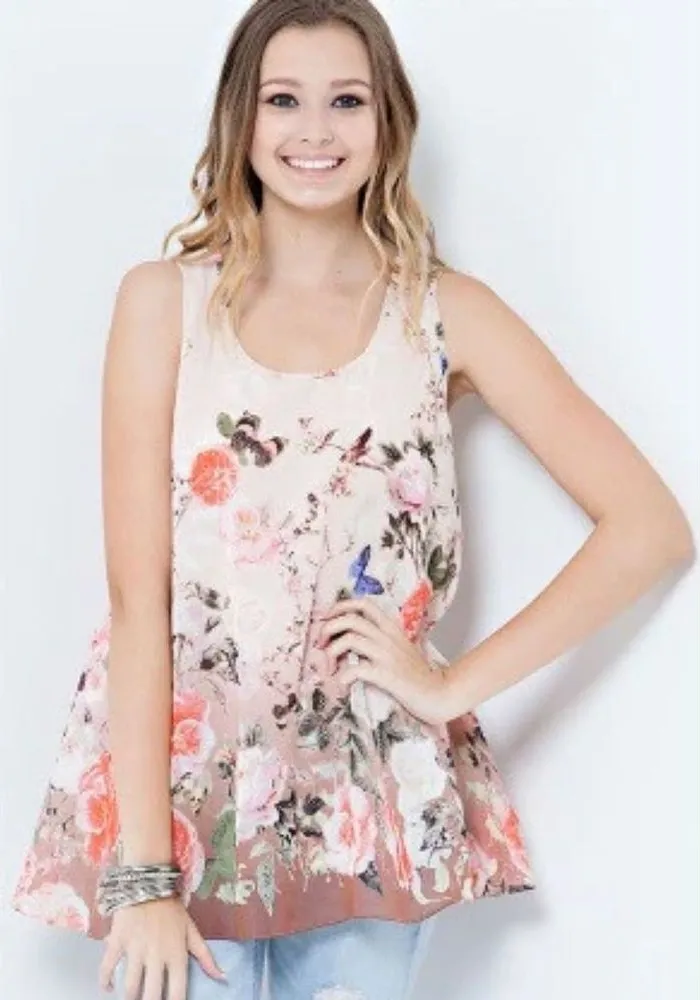 Description: Entro Womens Tunic Top Sleeveless Tie Back Floral Tank Blouse Pink Beige Small. Lightwe... Show more