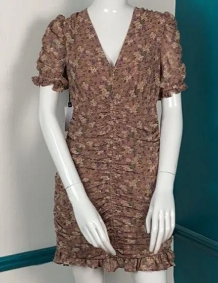 ASTR the Label NWT v neck ruched puff sleeve floral dress. Ruffle on the bottom. Flattering soft ruc... Show more