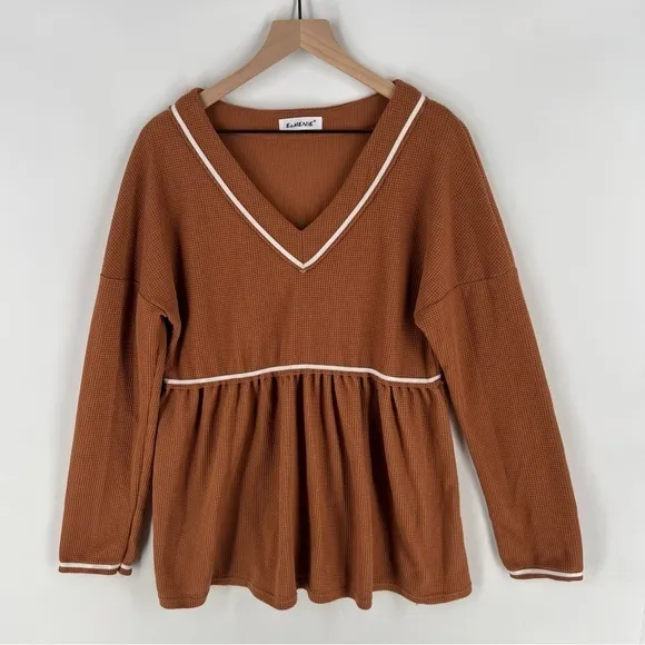 EoMENIE Womens Size L Waffle Knit V-Neck Long Sleeve Swing‎ Top Brown Size L - $18 - From Asia