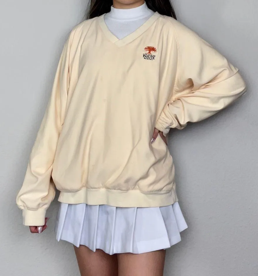EP pro Pale Light Cream Yellow Athletic Golf Long-Sleeve V-Neck Wind Shirt Windbreaker Jacket Size L - $20 - From Shelby