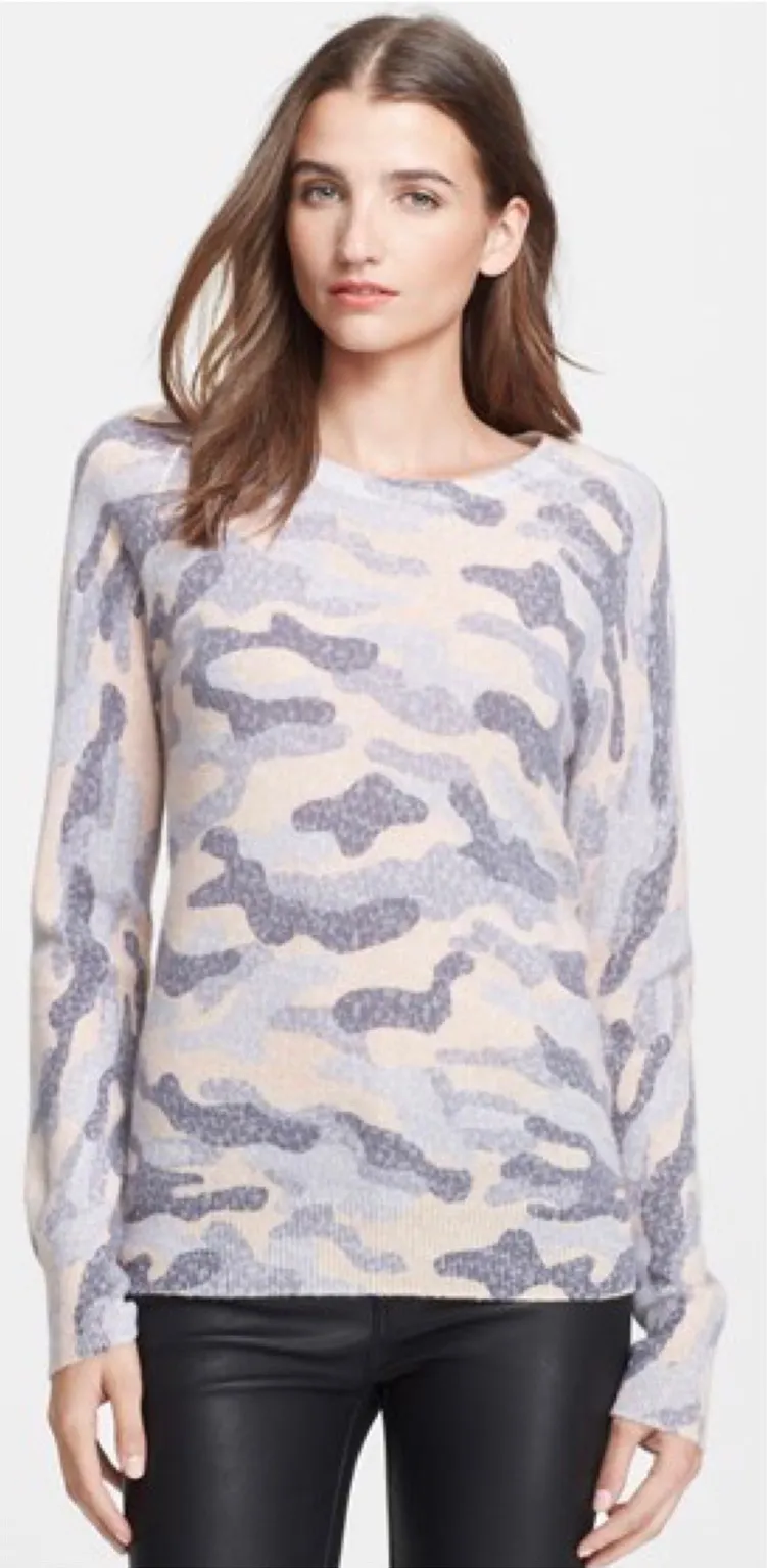 $268 Equipment femme Sloan Lace Camo Print Sweater Medium Wool & Cashmere A relaxed silhouette with an elongated hemline creates a chic, preppy sweater out of soft-knit cashmere. Grey blue pink color way Abstract Camo print Crewneckline Long sleeves Ribbed hem and cuffs Lightweight Pullover Wool poly cashmere blend #10e740 Tags: holiday, fall, winter, autumn, cozy, minimalist, classic, classy, chic, quiet luxury, comfy, wardrobe staple, designer, basic, knit, soft,