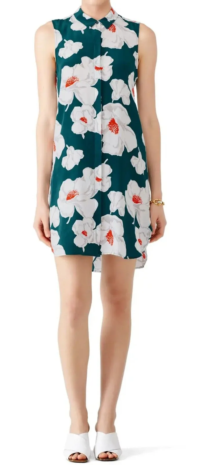 Equipment Janna Silk Dress Womens XS Floral Tropics Daisy Green Collar Button Front Sleeveless See... Show more