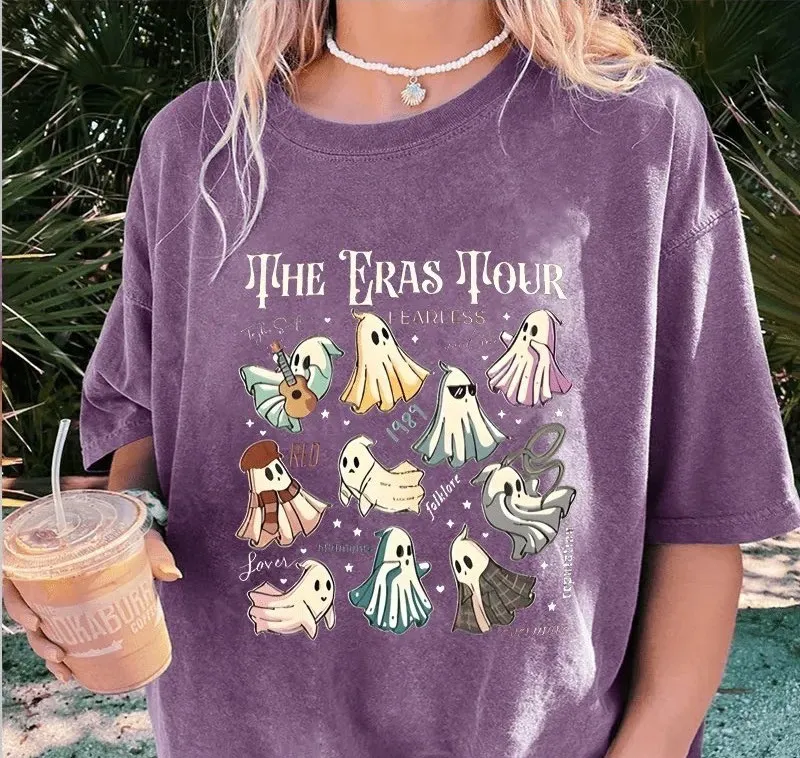 Type: T-Shirt Department: Unisex Adults Style: Basic Material: Cotton Blend, Polyester Blend Neckline: Crew Neck Sleeve Length: Short Sleeve Sleeve Type: Casual Sleeve Pattern: Graphic Print Theme: Retro, Colorful, Quotes, Stars Features: Preshrunk, Stretch Fit: Relaxed Fabric Type: Jersey Occasion: Casual Keywords: eras tour, ghost graphic, concert tee, taylor swift, music tour, short sleeve, crew neck, casual, cotton blend, oversized fit, graphic tee, fan merch Offers welcome! Fast Shipping!