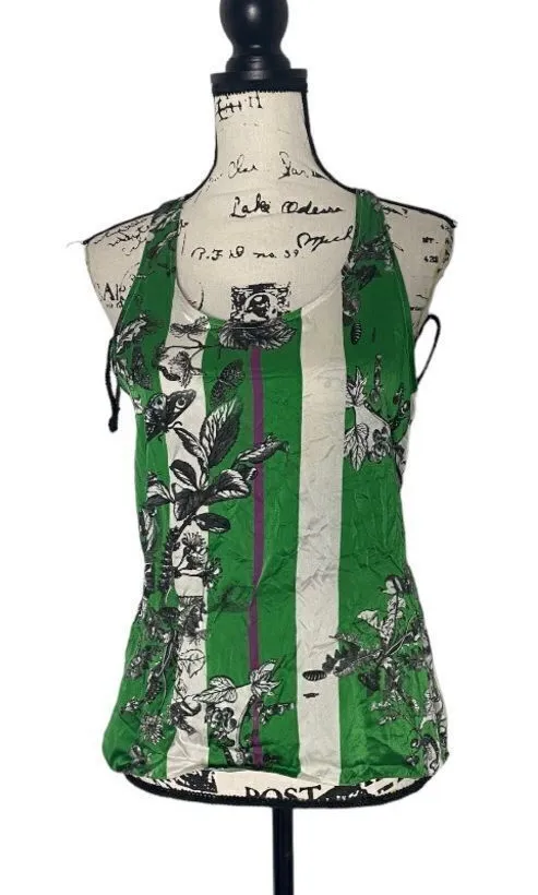 Erdem Silk Tank Top Women’s Size 6 Green White Floral Print Striped Racerback Blouse Elegant and ey... Show more
