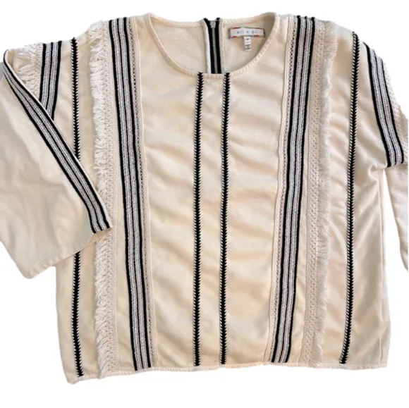 eri + ali Anthropologie cotton terry lined striped top with fringe accents, M Black Size M - $35 - From Jill