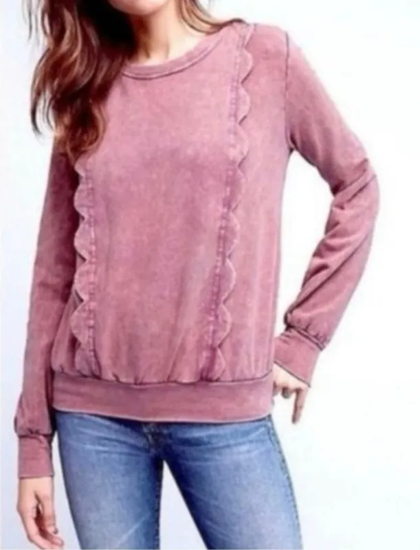 Anthropologie Eri + Ali Excellent preowned condition Incredibly soft washed french terry Scalloped ridged accents on front Dusty pink mineral/acid wash finish Crew neck Cotton/Spandex blend Full measurements in photos Long sleeves