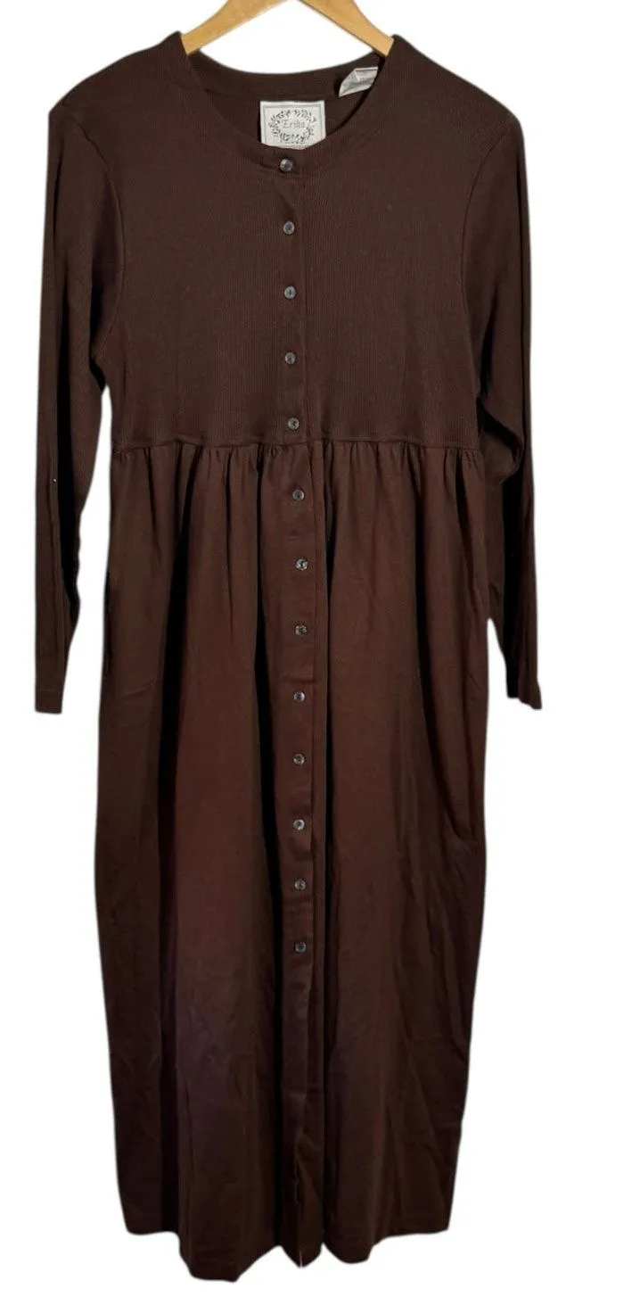 Erika 90s Tradwife Modest Full Button Up Shirt Dress Women M Chocolate Brown Minimal Transition Cott... Show more