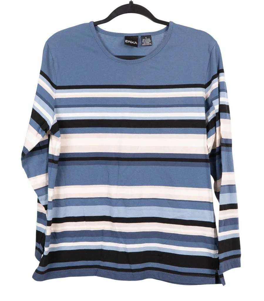 Size: Womens S Measurements are approximate and taken flat. Underarm to Underarm 20 in / 51 cm Sleeve Length 22 in / 56 cm Top Length 25 in / 64 cm There are no stains, tears, or rips. Please see the pictures. All pictures are of the actual item. Colors may vary slightly due to camera limitations and monitor settings. • 60% Cotton, 40% Polyester • Machine Wash New Without Tags