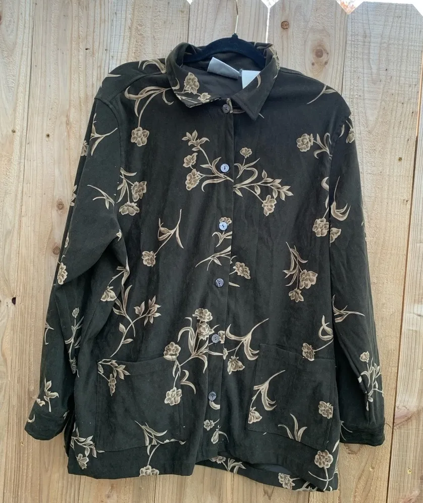- Erika Studio Womens Size XL Long Sleeve Pockets Shirt Jacket ‎ Floral Green Tan - $18 - From Caitlin