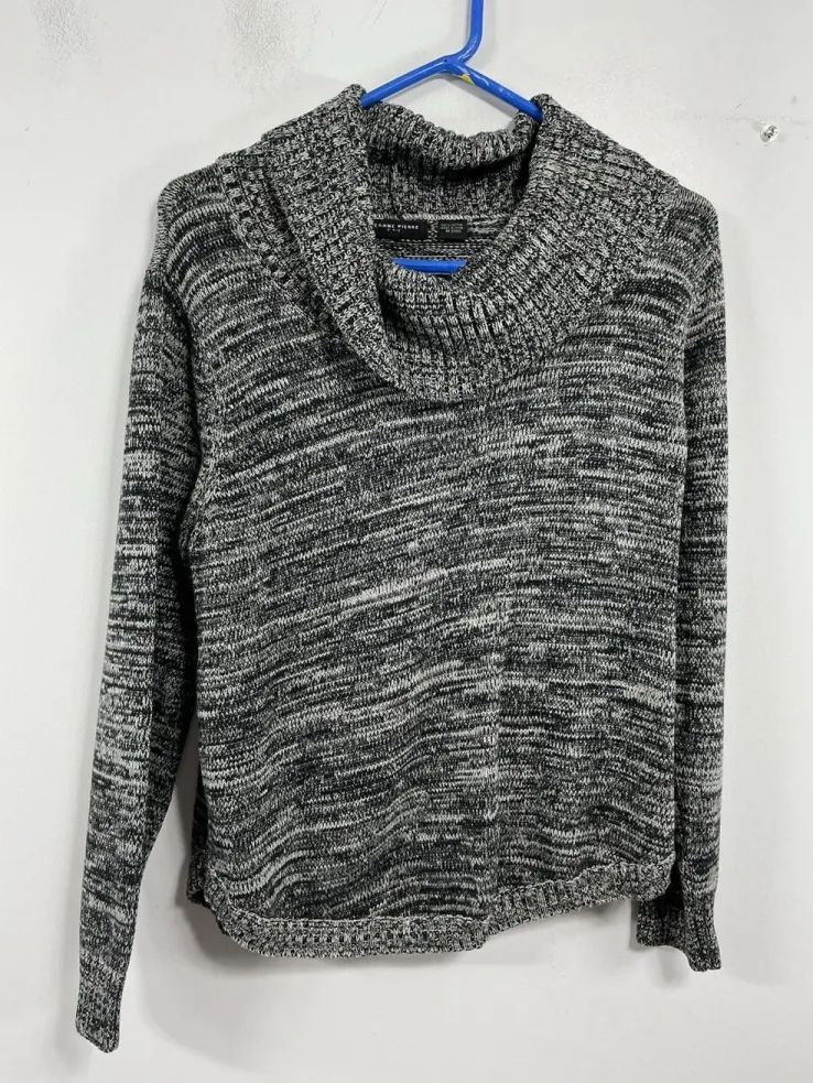 This is a black cowl neck pullover cropped sweater designed specifically for petites size PL by Jeanne Pierre. Made of 100% cotton, this sweater features long sleeves and is in a stylish pullover design. Perfect for women looking for a versatile and comfortable addition to their wardrobe, this sweater can be dressed up or down for any occasion. The cowl neck adds a touch of sophistication while the petite sizing ensures a perfect fit for those who are shorter in stature. Approximate measurements; Pit to Pit 19.5” (39”) Length 23.5” Sleeve length 17.5” This sweater is pre owned and looks to be in good condition!