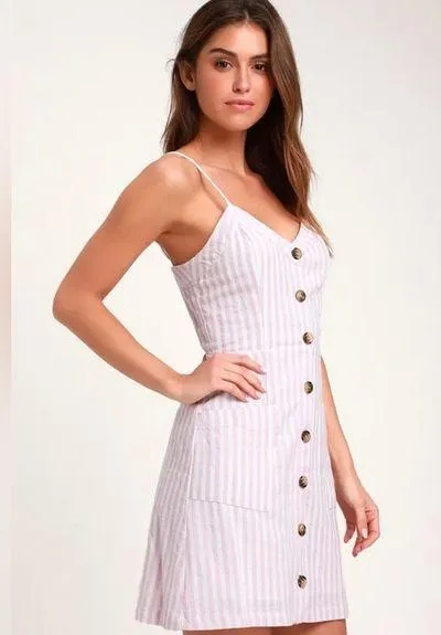 Lulu’s On The Pier Lavender & White Striped Button Front Mini Dress Brand new with tags attached!... Show more