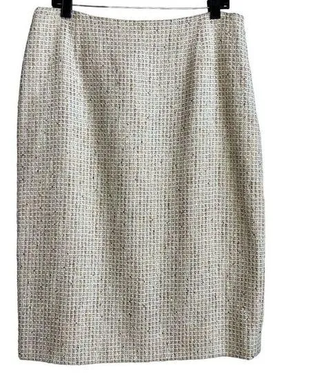 Elevate your wardrobe with this stunning Escada pencil skirt. The skirt features a solid pattern and is made of high-quality tweed material with a sequin accent. It has a zip closure and is knee-length, making it suitable for any occasion, from formal to casual. The skirt is lined and can be worn in any season. It is a perfect addition to your collection, whether you are a designer, metal, or preppy enthusiast. The skirt is available in size 42, with a regular size type and a straight and pencil style. Make a statement at your next event with this gorgeous Escada skirt. Measurement laying flat Waist 17" Hips 22" Length 27" Excellent condition