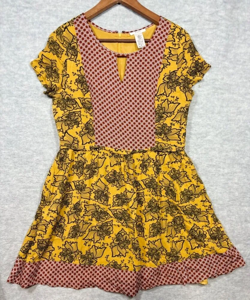 Who knew flowers and geometric shapes could get along? This vibrant dress is the perfect love child of geometry and botany. • Keyhole neckline • Back zipper closure • Short sleeves • Mixed floral and geometric patterns • Lightweight fabric Chest: 18" Length: 31" Size: Womens S Condition: Pre-Owned Very good preowned condition, no flaws.