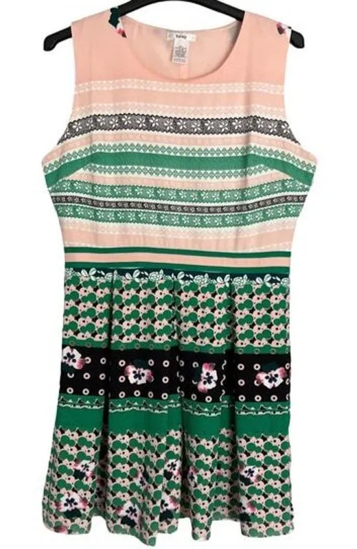 ESLEY - Womens Sleeveless Dress Size L Pink Floral Round Neck Pleats Side Zip 19" armpit to armpit... Show more