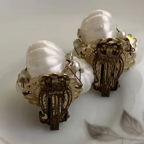 Vintage•PEARL WHITE clip on faux Pearl Goldtone earrings Made in Japan and still maintain their ear... Show more