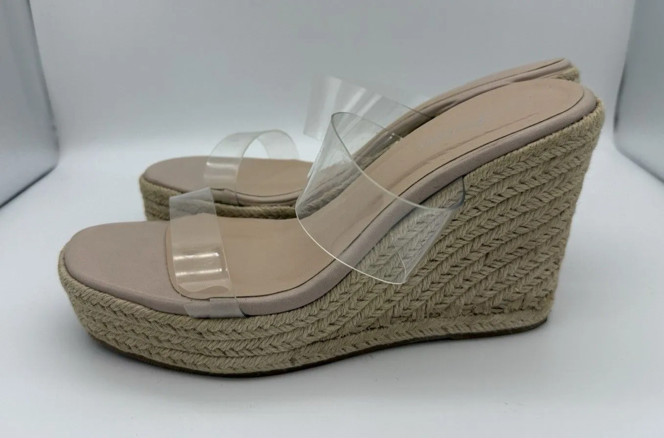 Espadrille Wedges Womens 9 Clear Straps Open Toe 4" Heel Wedding Travel Preppy - $24 - From MMC