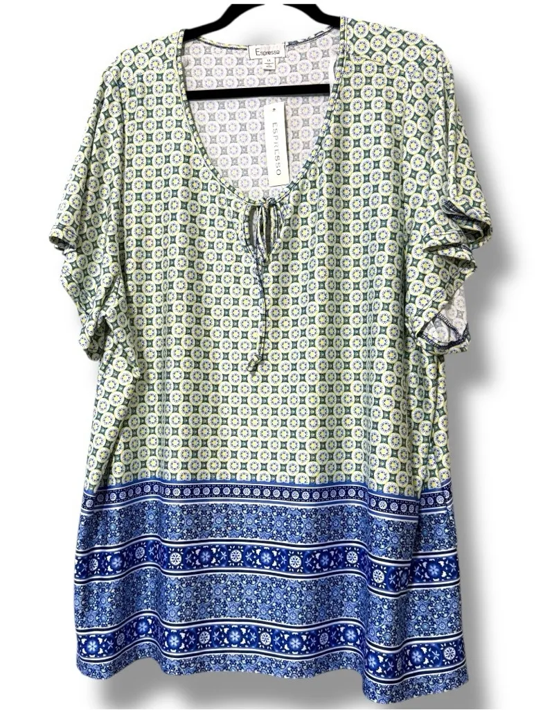 ESPRESSO women’s plus size 1X short sleeve geometric print scoop tie neck tshirt Green - $25 New With Tags - From Melissa