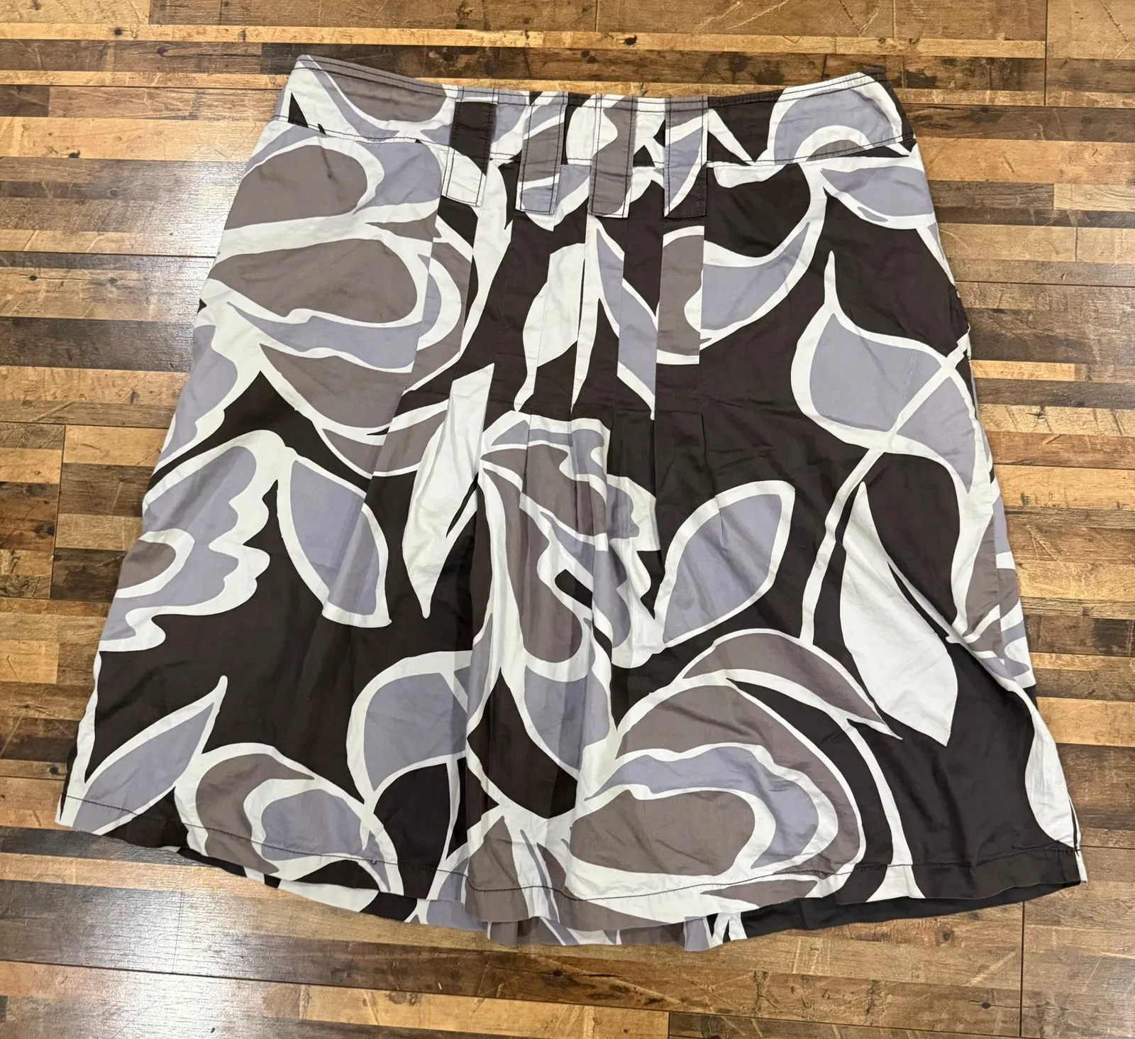 Esprit A-line midi skirt in a striking floral print. Features a pleated front, side pockets, and a side zipper closure. Measurements: • Waist: 17 in • Length: 21 in Keywords: Esprit skirt, pleated skirt, floral skirt, midi skirt, A-line skirt, pockets, side zip, women's fashion, casual skirt, statement print, brown skirt, grey skirt, white skirt • I ship within three business days. • All items come from a pet-friendly, smoke-free home. • Please compare the measurements to something you already own.