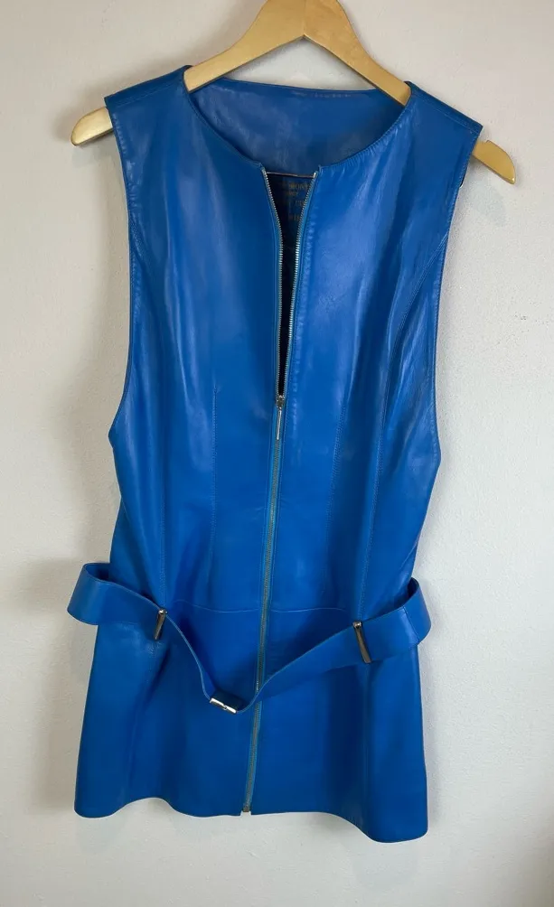 Incredibly rare opportunity to own a collectors item. Claude Montana is very well known leather fashion designer. Most leather pieces sell for thousands. Add a pop of color to your wardrobe with this vibrant blue sleeveless vest. Has some wear and marks. In great condition. Perfect for layering and enhancing your style.