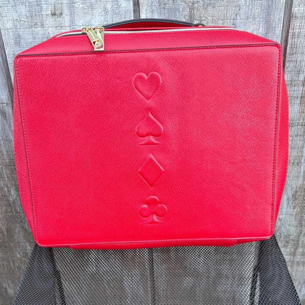 Like New Estee Lauder Red Faux Leather Cosmetic Bag with Card Suit Design - $21 - From Gerri