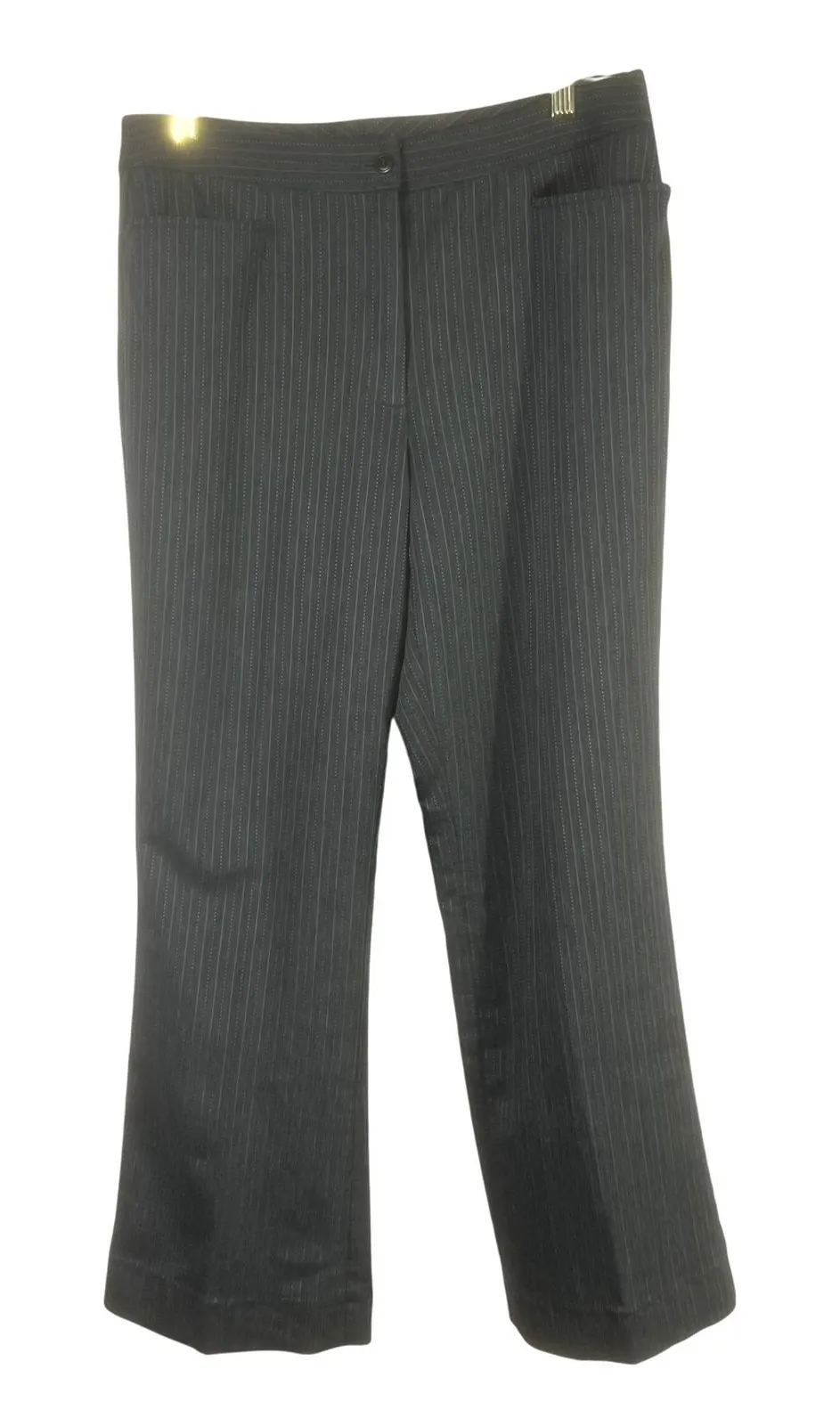 Elevate your workwear wardrobe with these stylish Etcetera women's dress pants. Designed in a timeless gray pinstripe pattern, these pants are perfect for the office, business casual settings, or professional events. • Brand: Etcetera • Size: 8 • Color: Gray with pinstripes • Style: Dress Pants / Straight Leg • Closure: Front zip with button • Material: 46% Viscose, 46% Polyester, 4% Acetate, 4% Elastane • Care: Professionally dry clean with perchloroethylene • Made in: China • Condition: Pre-owned, in excellent condition. No holes, stains, or major signs of wear. Classic tailoring with a slight stretch for comfort and movement. A versatile addition to any professional wardrobe. Measurements (approximate, taken flat): • Waist: 15.5" • Rise: 10.5" • Inseam: 27" • Leg Opening: 9.75 Office chic, career wear, professional, minimalist, business casual, tailored, classic, corporate, modern.