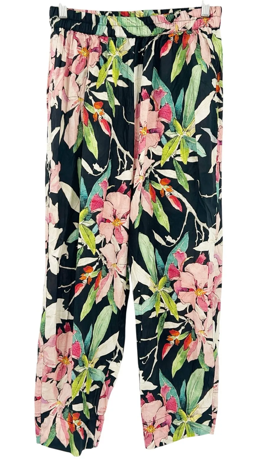 Ethnc Womens Summer Resortwear Pull On Elastic Waist Tropical Floral Pants in Multicolor. Size mediu... Show more