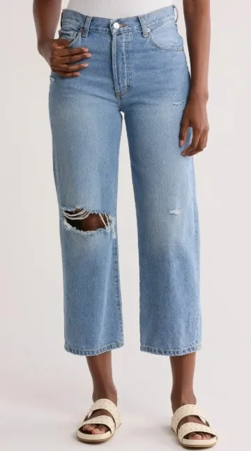 Meet your new favorite denim: cropped jeans offering a relaxed, vintage-inspired vibe. The light wash denim features a flattering high waist and a trendy, loose fit that's both comfortable and stylish. Intentionally placed rips at the knee and thigh lend an effortlessly cool, lived-in feel, adding character and edgy appeal. Detailed with classic five-pocket styling and a button fly, these jeans combine timeless design with modern details. These ethically made jeans are perfect for a casual day out, a stylish weekend brunch, or a relaxed evening gathering. Style: Cropped Color: Blue Department: Women Type: Jeans Fabric Wash: Light Accents: Button Features: Distressed, Pockets, High Waist, Loose Fit, Comfort Waist Size: 26 in Fit: Loose Pattern: Solid Rise: High (Greater than 10.5 in) Fabric Type: Denim Closure: Button Keywords: Etica Denim, Altin Loose Crop, Ithaca Jeans, Ripped Jeans, Distressed Jeans, High Waisted Jeans, Crop Jeans, Loose Fit Jeans, Light Wash Jeans, Size 26 Jeans, Women's Jeans, Casual Denim, Ethically Made, Sustainable Denim