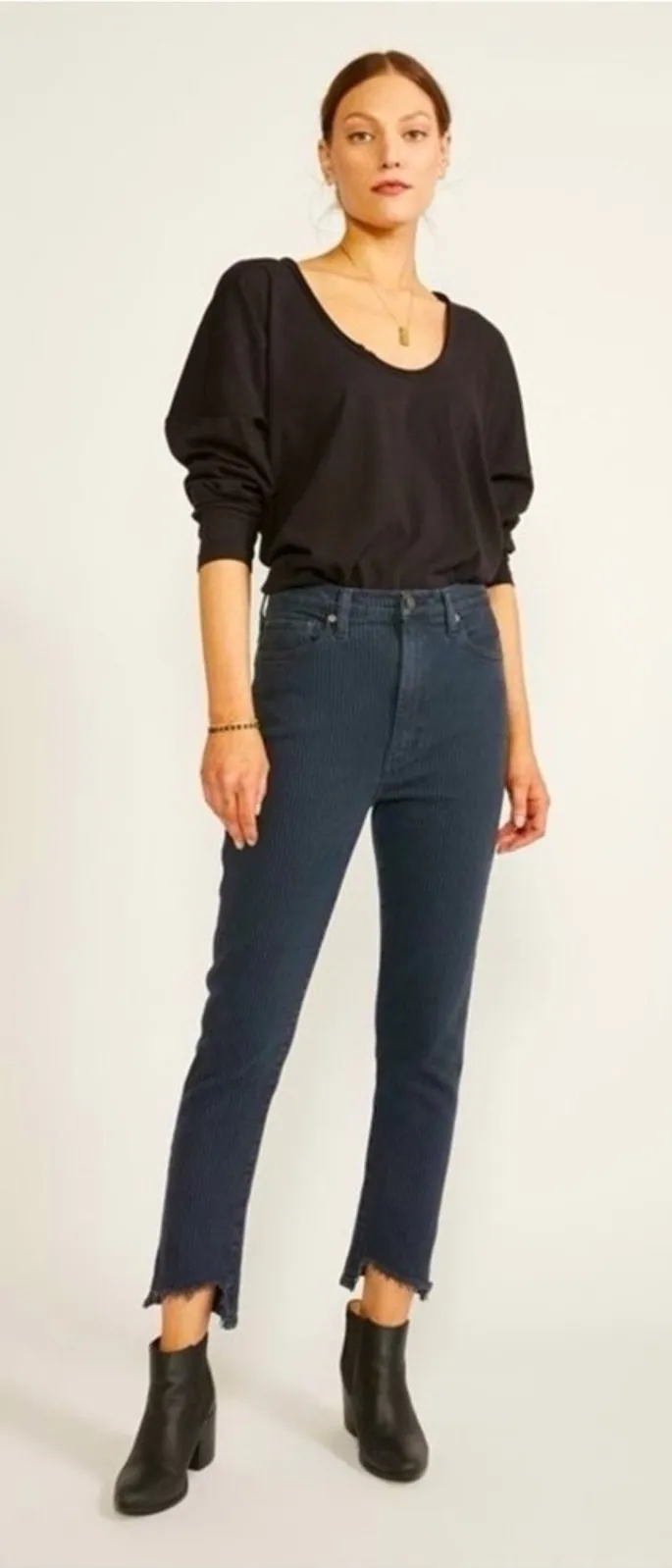 Etica Scarlett Mid Rise Skinnyish Leg Jeans 30 Night Stripe Features: -The perfect skinny jeans to wear with your favorite boots this season!Form-fitting but not tight, Scarlet fits slim through the hip with just a bit of room through the leg. A soft, organic comfort stretch denim provides movement and breathability Fabric: -Cotton -Elastane -Lycra Measurements: -Inseam 24 -Rise 11 -Waist 14 Size: -30 Condition: -Pre owned Ships next business day.