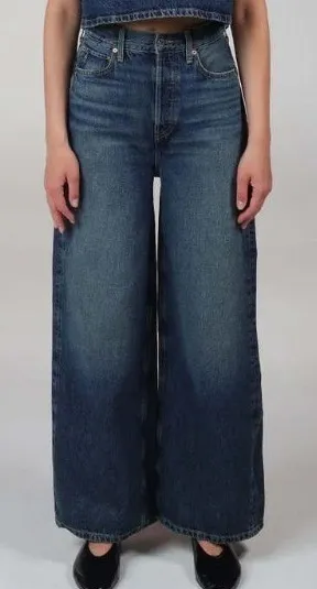 Make a statement with these Etica Terranea Marley jeans, where comfort meets cutting-edge design. These jeans boast an ultra-high rise that cinches the waist, flowing into dramatically wide legs for a bold, contemporary silhouette. The denim wash offers a vintage-inspired look, ensuring a soft, lived-in feel from the very first wear. Thoughtfully designed with attention to detail, these jeans feature classic five-pocket styling and a button-fly closure. Envision yourself turning heads at weekend brunches, casual Fridays at a creative office, or even making a fashion-forward statement at an art gallery opening. Style: Wide-Leg Color: Blue Department: Women Type: Jeans Fabric Wash: Medium Accents: Button, Logo Features: Pockets, High-Rise, Comfort, Wide Leg, Button Fly Waist Size: 30 in Fit: Relaxed Pattern: Solid Rise: High (Greater than 10.5 in) Fabric Type: Denim Closure: Button Keywords: Etica, Marley, Jeans, Ultra High Rise, Baggy Jeans, Wide Leg Jeans, Terranea, Denim Pants, Size 33, Women's Jeans, Contemporary Denim, Vintage Wash Jeans, Fashion Jeans, Casual Jeans