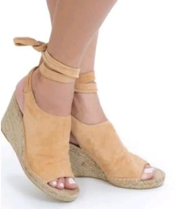 Etienne Aigner Suede Tie Up Wedge Sandals Shoes Size 9 Tan Good pre-owned condition. Light signs o... Show more