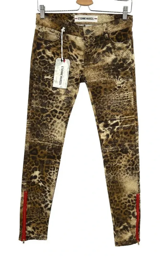 Brand new with tags Etienne Marcel Cheetah Print Skinny Jeans Zip ankle detail (functional) in red and gold 5 pockets Zip fly and button closure 97% cotton 3% spandex Size 25 Waist is approx 14" Front rise is approx 7" Inseam is approx 30"