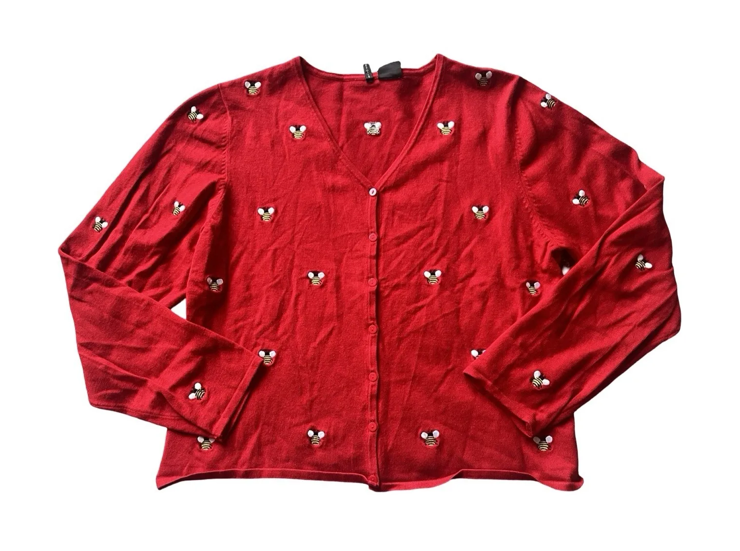 Etoile Woman's L Red Embroidered Bee Soft Cardigan Sweater Teacher Honey Cottage Size L - $30 - From Sam