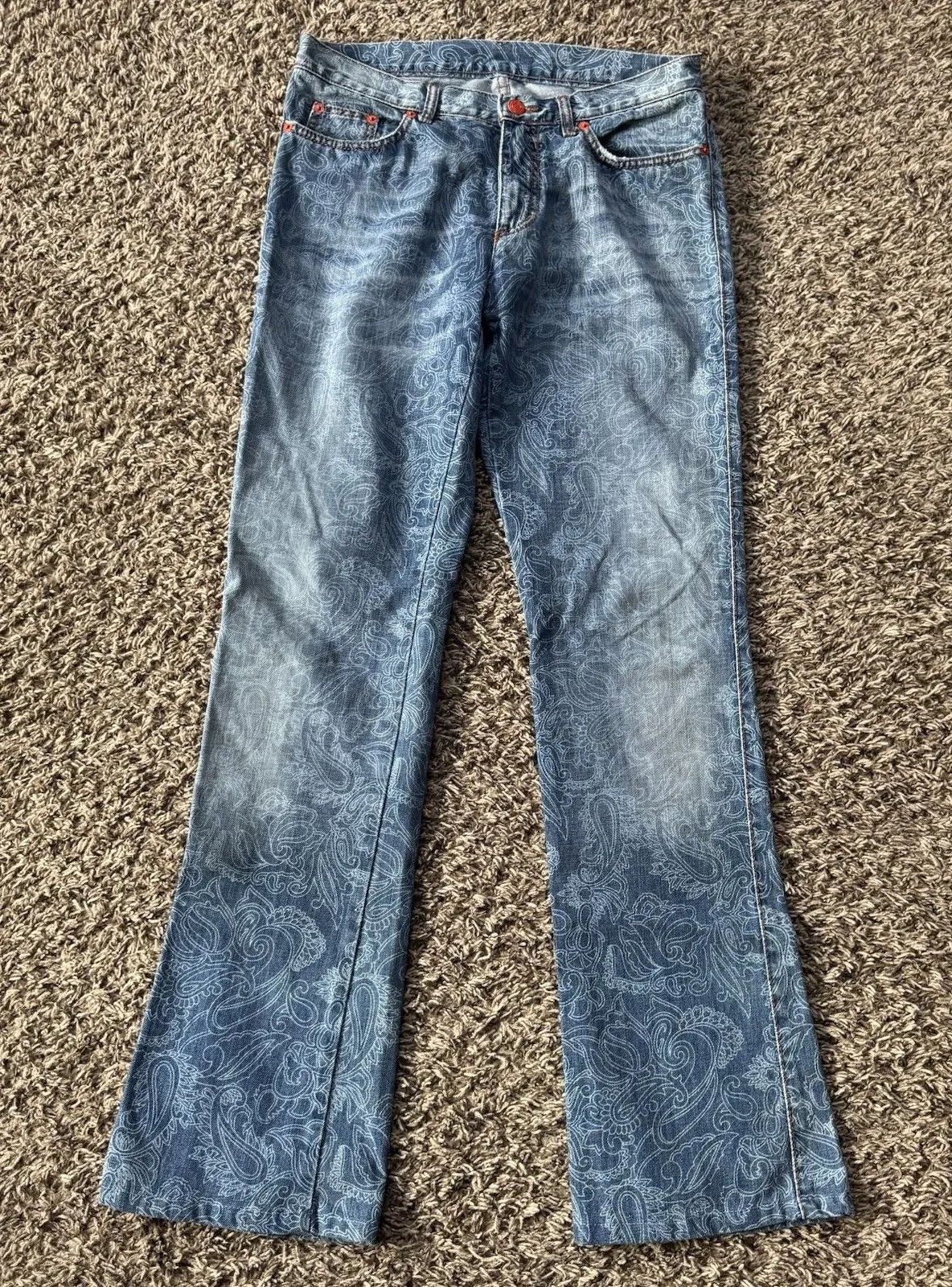 Etro Milano Blue Paisley Pattern Denim Jeans Womens Waist 29 Luxury Boot Cut - $100 - From Jennifer