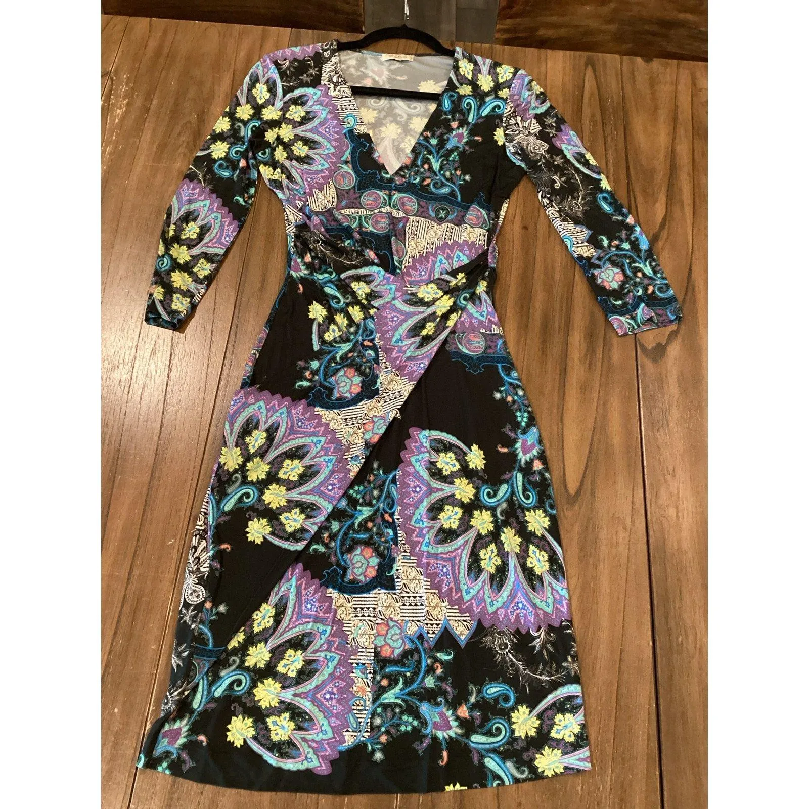 Etro ornament Paisely scarf floral faux wrap 3/4 sleeve midi dress 42 Purple Size undefined - $150 - From Miriam