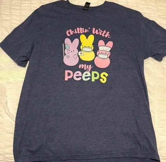 Enjoy a relaxed day with the 'Chillin' With My Peeps' blue t-shirt. Perfect for casual outings. I... Show more