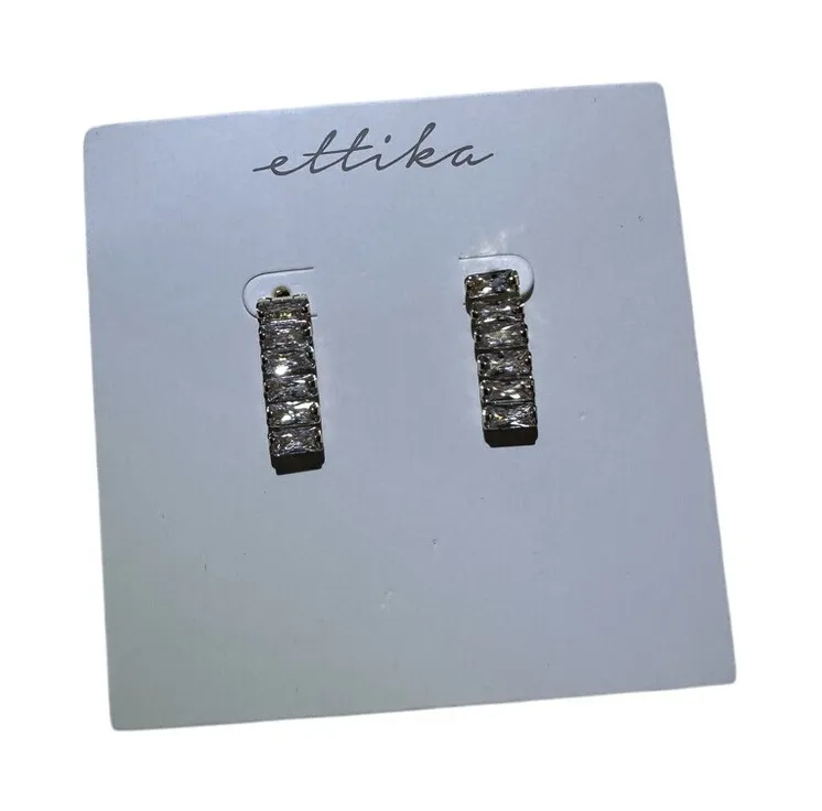 Gleaming elegance defines these Ettika hoop earrings, a perfect touch of sparkle for any occasion. These chic earrings feature a row of shimmering cubic zirconia crystals set in a radiant gold tone. The design offers a sophisticated and modern look, ideal for elevating your everyday style or adding a touch of glamour to a special event. These earrings are perfect for adding a touch of sophistication to a date night outfit or bringing a subtle sparkle to a business casual ensemble. Keywords: Ettika, gold hoop earrings, cubic zirconia, crystal earrings, sparkly earrings, glam earrings, statement earrings, gold jewelry, hoop earrings, fashion earrings, gift for her, new earrings