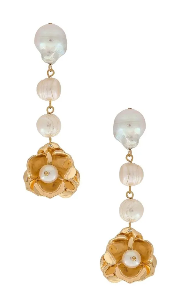 Gold-tone metal with pearls Post-back closure Measures approx 3" dangling Revolve Style No. ETTI-WL1... Show more
