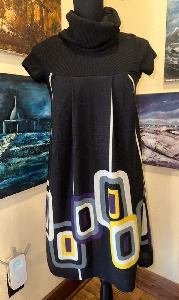 EUC 70’s Vintage hypnotik dress black geometrics abstract short sleeves Sz S Gold - $40 - From Francesca