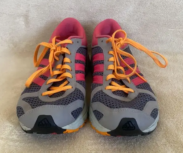 EUC Women’s Adidas Marathon Running Shoes, #G24321, Grey/Pink/Orange. Worn two tones, thus the small... Show more