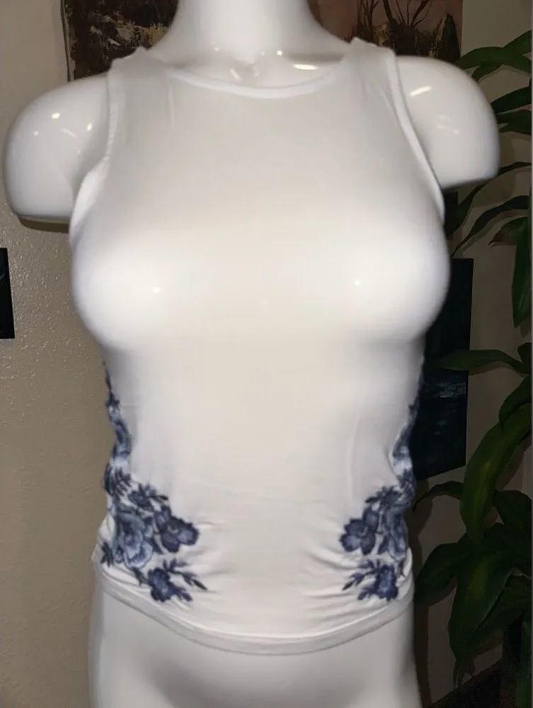 EUC American Eagle Soft And Sexy Tank Top embroidery flowers on side Sz Xs Super soft and stretchy... Show more