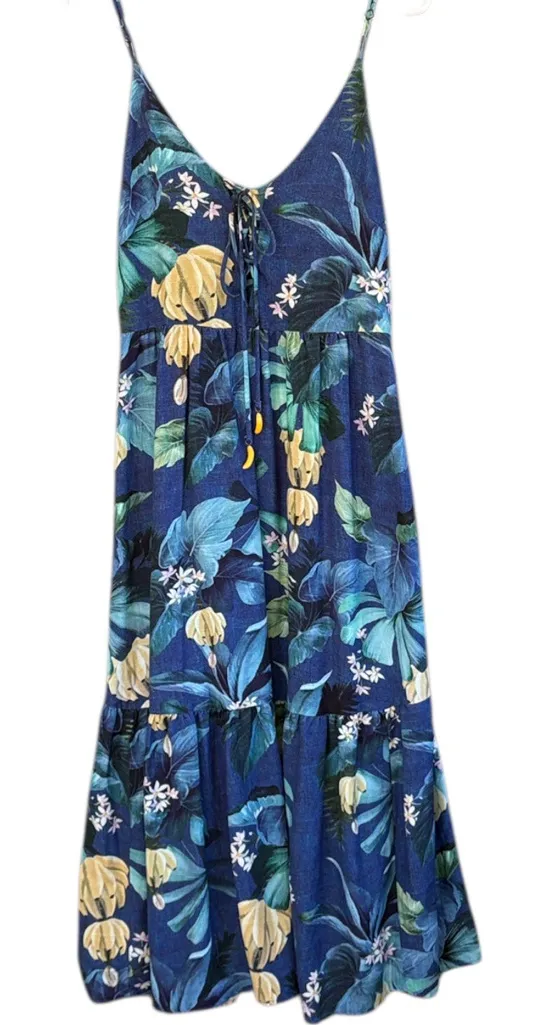 Worn once; Gorgeous! Viscose cotton; lace up bodice with banana charms; adjustable straps; pit to pi... Show more