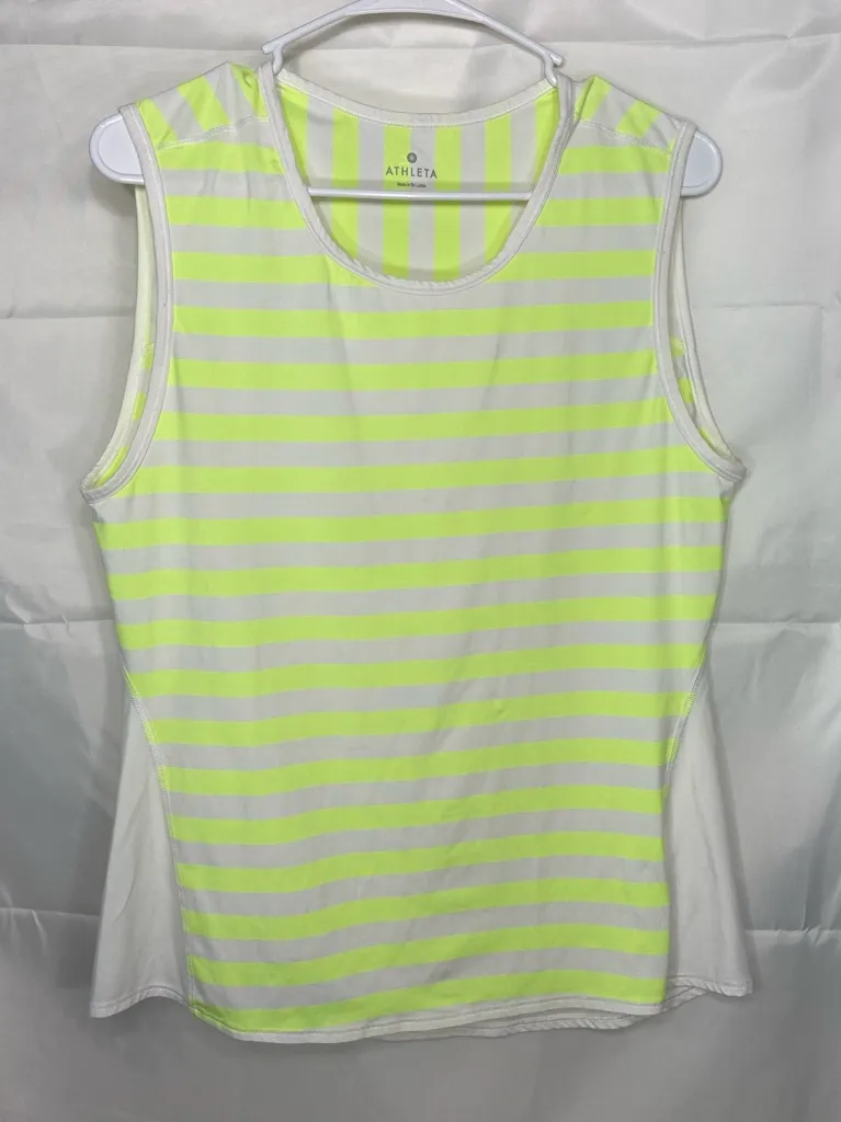 Athleta women’s neon yellow white ocean stripe chi muscle tank top active Size medium In excellent u... Show more
