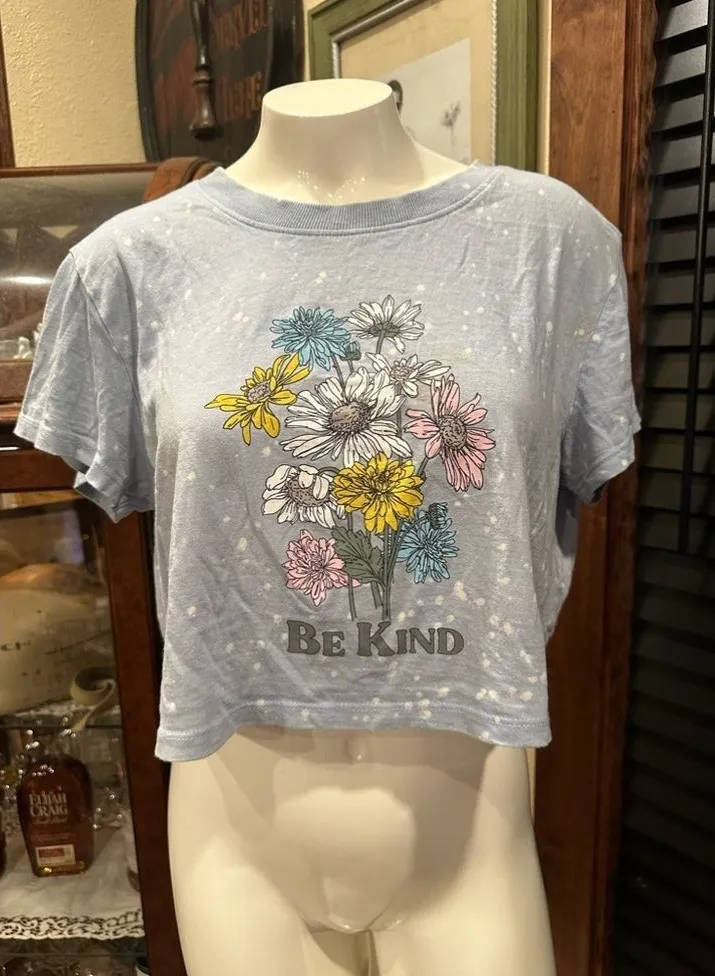 EUC Be kind baby blue graphic crop T-shirt shirt short sleeve Size L - $15 - From Francesca
