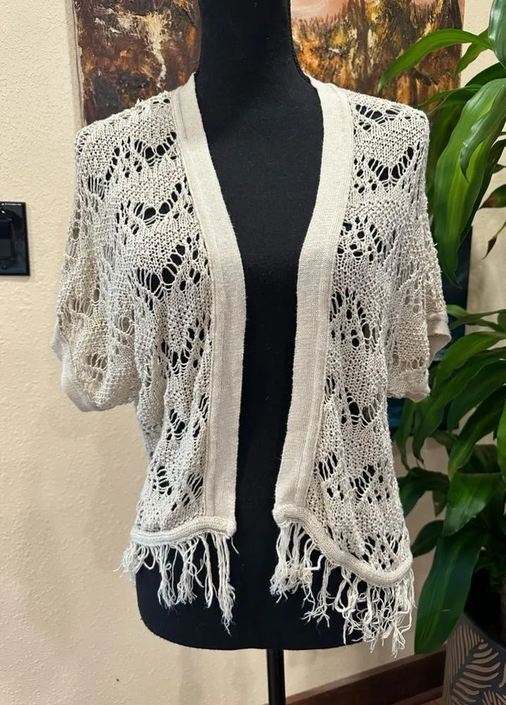 EUC Bongo Womens Tassels Lace Bolero Shrugs Short Sleeve Crop Sz L