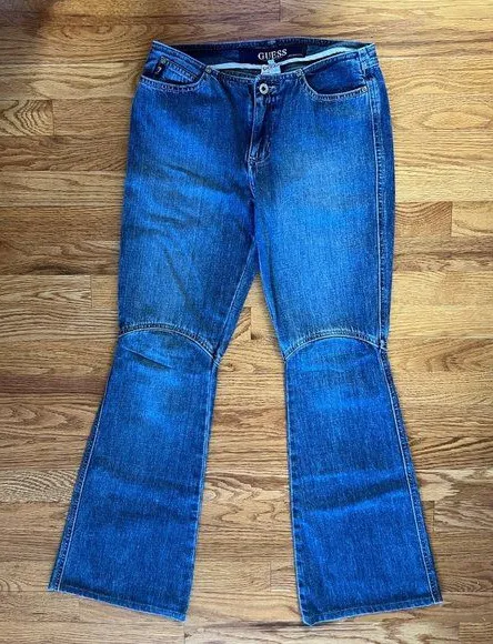 Vintage Guess - denim flared jeans - blue jeans Excellent Used condition Dramatic bell bottom styl... Show more
