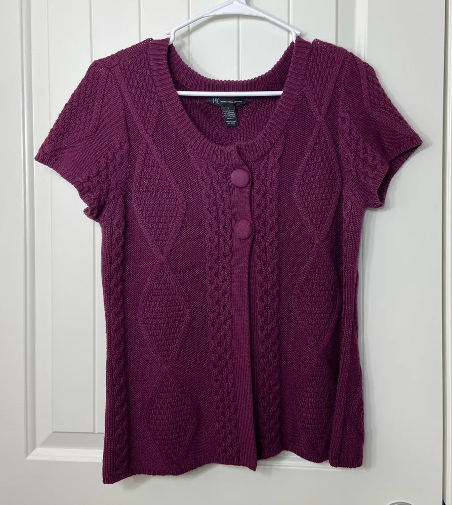 INC International Concepts women’s dark purple thick knit button sweater Size medium In excellent used condition Smoke free home! Pit to pit 17.5 inches, length from shoulder 23 inches